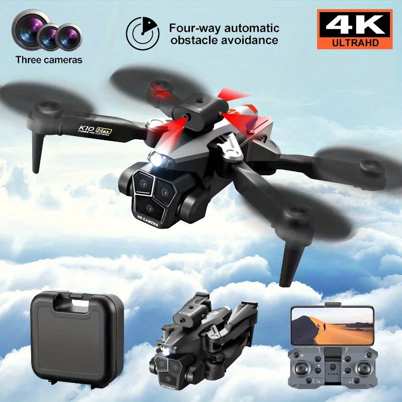 2 Batteries K10 MAX: 3 Camera Remote Control Drone with SD Three ESC Camera Optical Flow Positioning 360° Obstacle Avoidance 2.4
