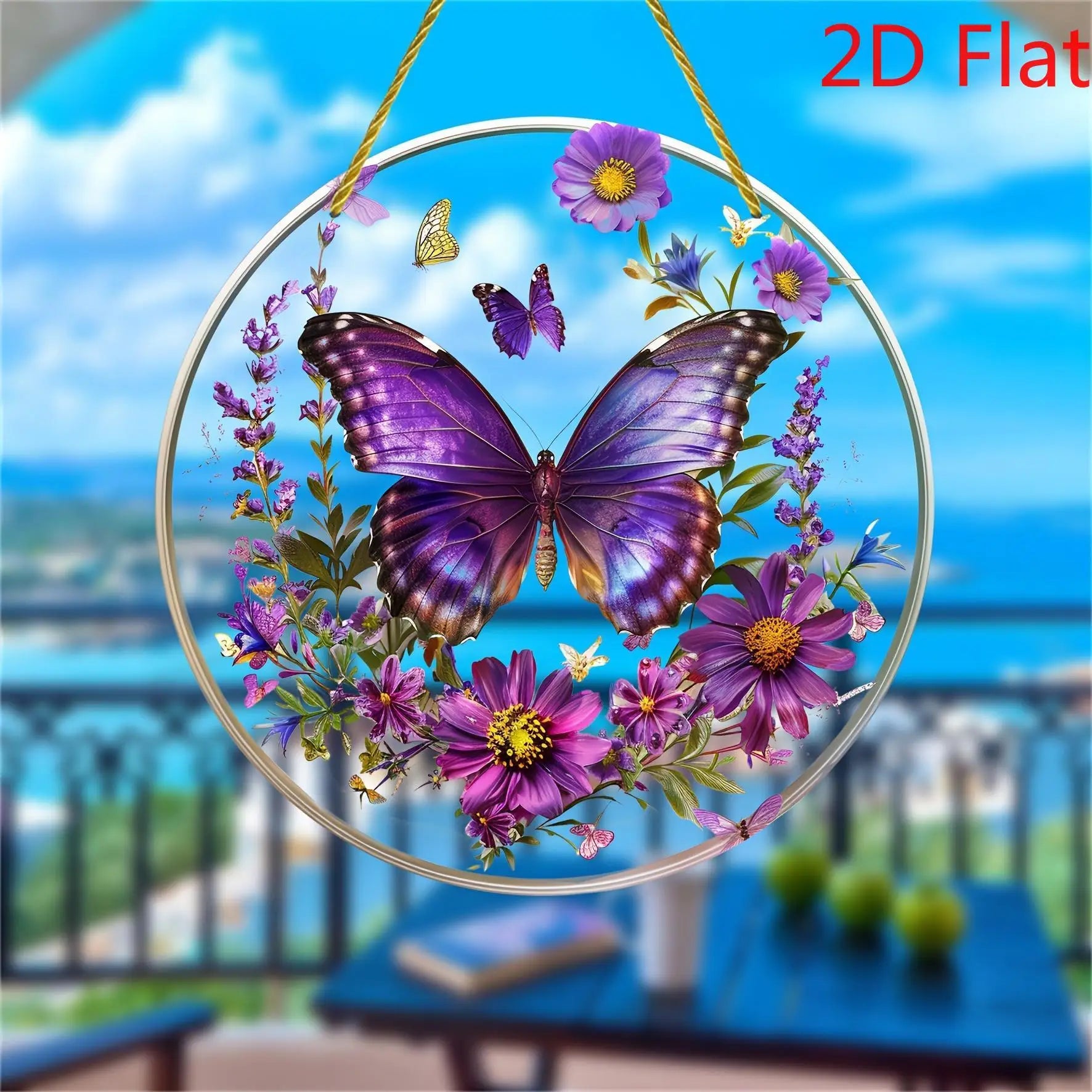 2D Purple Butterfly Suncatcher - Stained Glass Window Hanging for Home Decor, Birthday & Festival Gifts