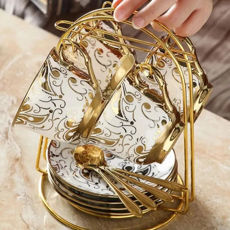 Ceramic Coffee Cup Saucer Scoop Set with Cup Holder European Porcelain Bone China Luxury Teaware Heat Resistant Restaurant Cup