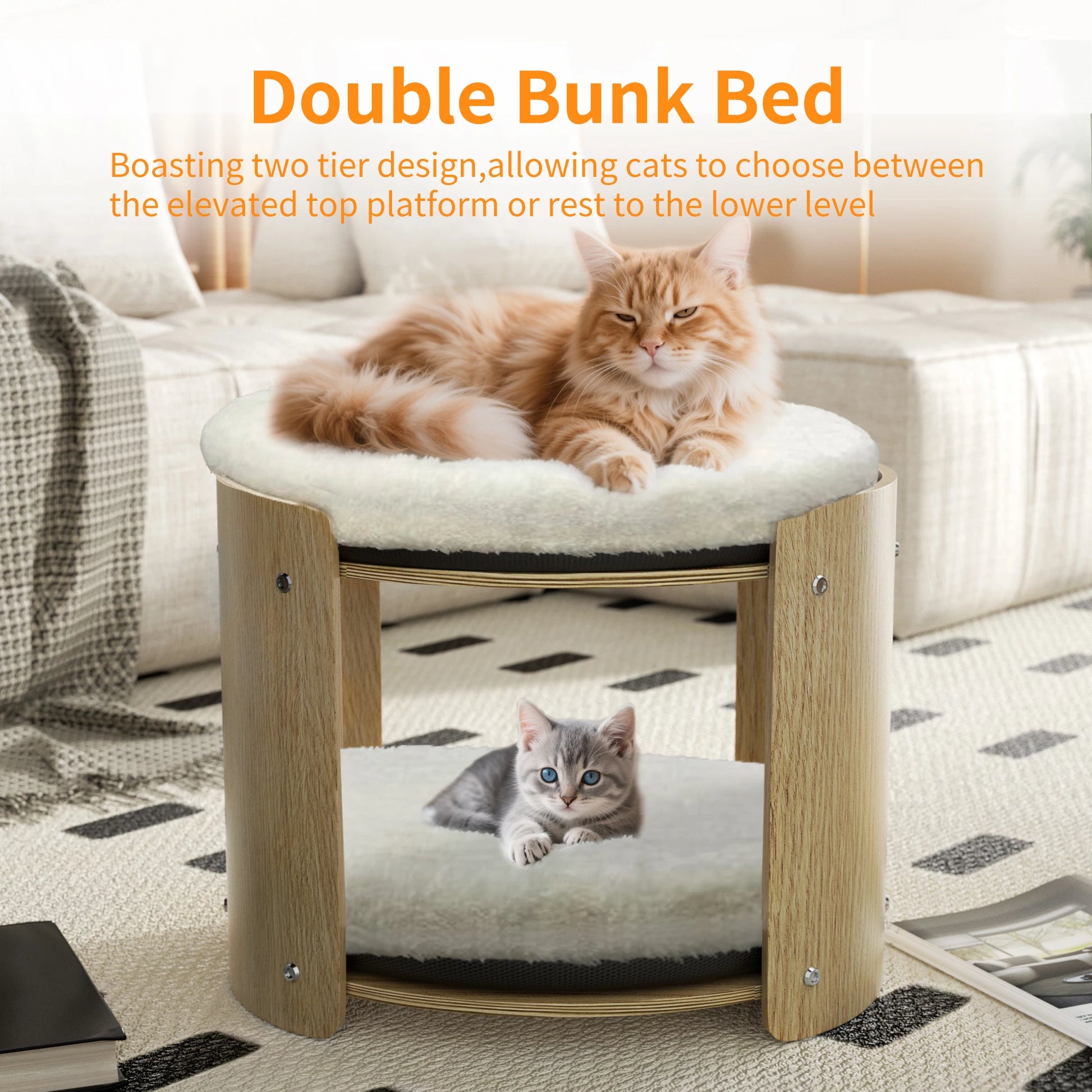 Elevated Indoor Cat Bed Two Tier Bamboo Cat Tree Mat