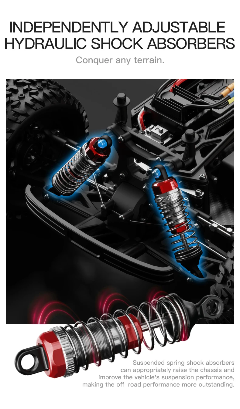 3, 4WD drive: Aluminum ring shock with adjustable spring travel