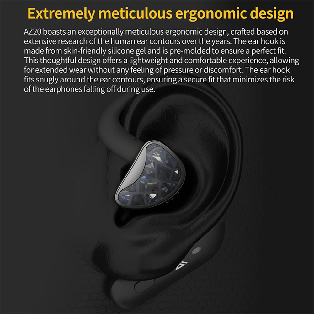 Feature: 1. True-to-Life Audio Quality: Experience pure and delightful sound with the AZ20 wireless upgrade ear hook, delivering an authentic and immersive listening experience. 2. Powerhouse Performance: The AZ20 wireless upgrade ear hook is equipped with the powerful Qualcomm 5171 Bluetooth-Compatible chip, providing reliable and stable connectivity for seamless communication. 3. Superior Sound Quality: The AZ20 sets a new standard in all aspects, delivering exceptional sound quality, crystal-clear calls, outstanding performance, and optimal power efficiency. 4. Upgrade Your Wired Earphones to Wireless: Transform your wired earphones into wireless Bluetooth-Compatible headphones instantly by connecting them to the AZ20 wireless upgrade ear hook Bluetooth-Compatible ear hook, giving you the freedom to enjoy music wirelessly. 5. Skin-Friendly Pre-Molded Ear Hook: Designed based on years of research on the human ear structure, the AZ20 wireless upgrade ear hook features a comfortable and ergonomic silicone ear hook. It fits snugly and securely, providing a lightweight and pressure-free wearing experience, ensuring stability and preventing accidental fall-off. KZ AZ20: