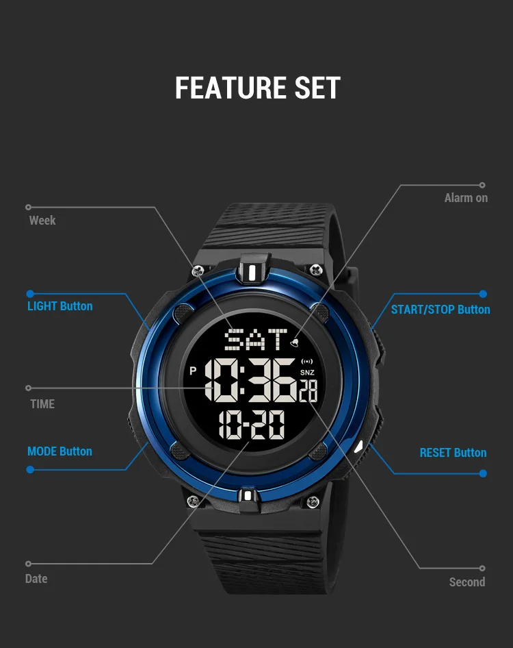 SKMEI Japan Digital Movement Back Light Countdown Wristwatch Electronic Watches For Mens 5Bar Waterproof Calendar Chrono Watches