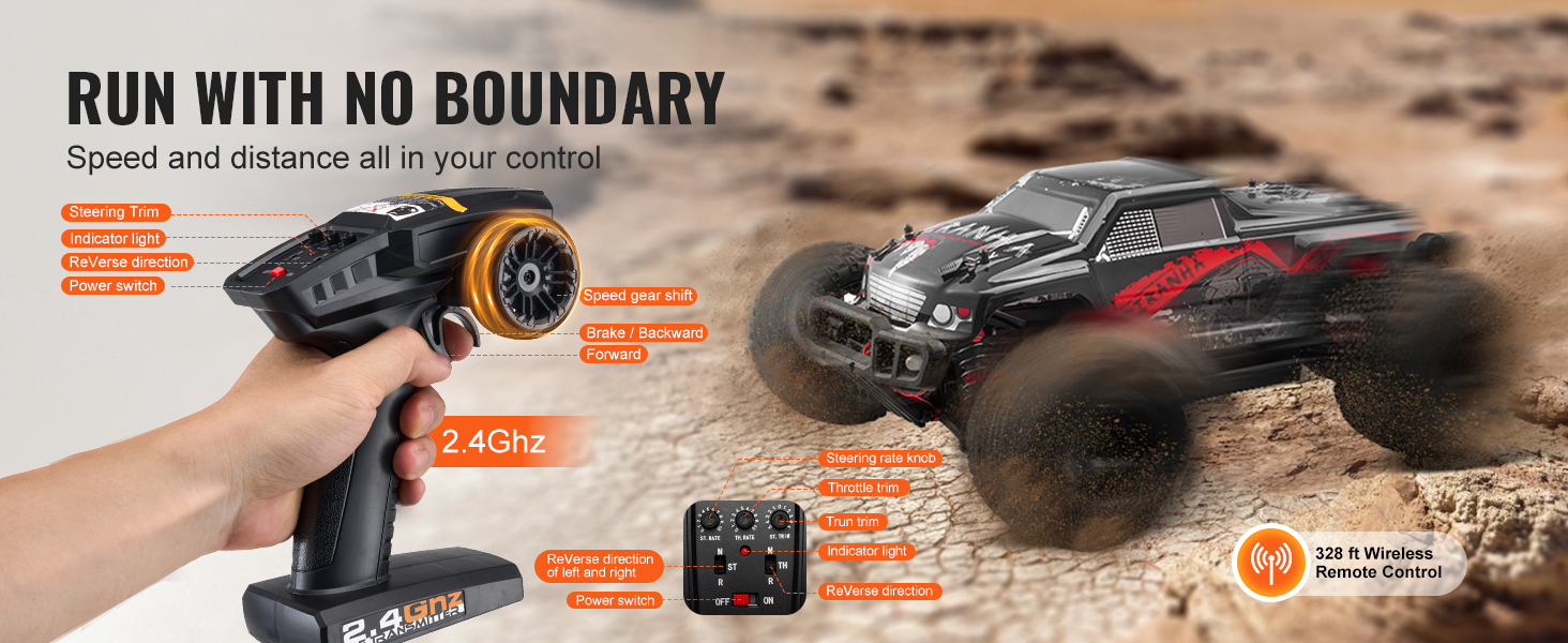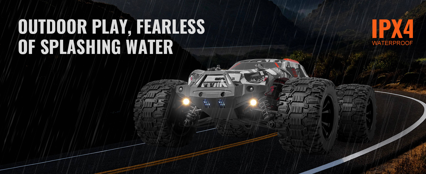 Thoughtful Design for Enhanced Play: With an IPX4 waterproof rating, a 328 ft long-range remote control, a high-precise main shaft, a strengthened dog bone, an efficient differential, and a durable chassis, every detail is crafted to offer kids the ultimate RC truck and more adventure.